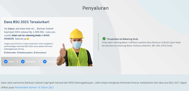 Bantuan Pemerintah berupa subsidi Gaji/Upah bagi Pekerja/Buruh bertujuan untuk melindungi, mempertahankan dan meningkatkan kemampuan ekonomi pekerja/buruh dalam penanganan dampak Corona Virus Disease 2019 (Covid-19). Penyaluran bantuan subsidi tahun ini diberikan kepada pekerja/buruh sebesar Rp 500.000,-/bulan selama dua bulan, yang akan diberikan sekaligus sebesar Rp 1.000.000,-